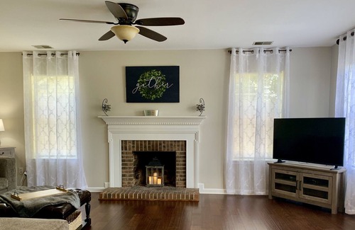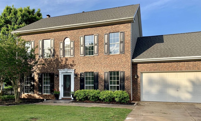 3 bedroom 2.5 bath home with spacious backyard & neighborhood pool. Close to GSP airport, Pelham Medical Center and I-85 for a quick drive to downtown Greenville or Spartanburg. Comfy living room with large sectional. Enjoy your morning coffee in the breakfast nook with bay windows overlooking a fully fenced backyard and positioned perfectly for viewing the sunrise. Kitchen opens to the living room area and has plenty of space for preparing your favorite meals. There is a separate dining room with a table that can seat six people.