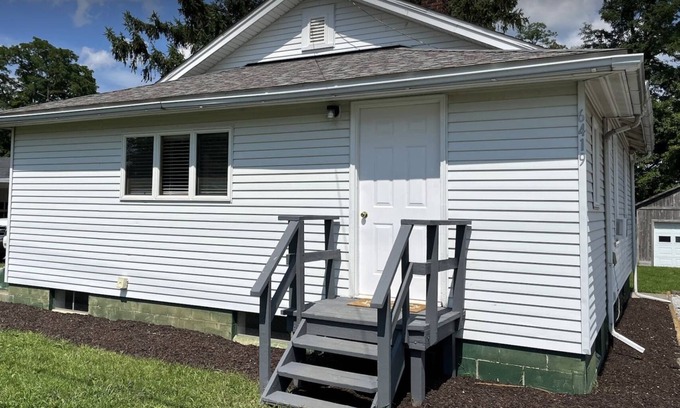 Welcome to Rosko Ridge where cottage charm meets newly remodeled modern convenience. The Ridge is located in the heart of wine country. It is Just a short drive to area beaches, Geneva on the Lake, Historic Ashtabula Harbor, The Grand River Valley Wine Region, Spire Institute, and more. There is a fully equipped kitchen to meet all of your cooking needs, including a gas stove/oven, full sized refrigerator/ freezer, and microwave. We provide complimentary WiFi, RokuTV, and a coffee bar. The Ridge has two bedrooms and one full bathroom with space for six people, including two queens and a set of twin bunk beds. Original woodwork and light fixtures adorn this house. The backyard boasts a scenic meadow view and a new fire pit. Come and relax with us!