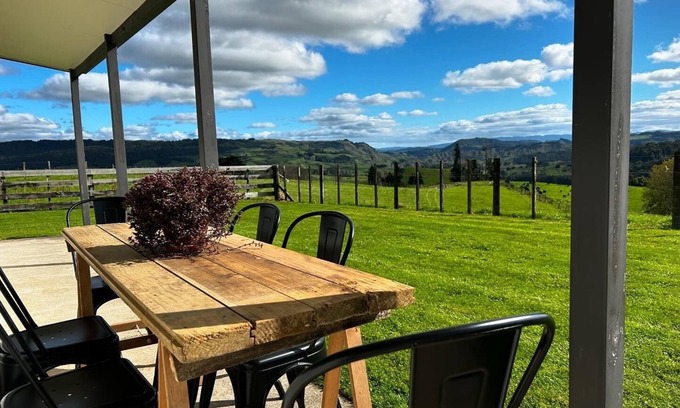 Rotowai Hills, nestled in the Mokauiti Valley, is situated on a working sheep and beef farm. The Rotowai Hills cottage, perched at the valley’s head, offers stunning vistas and magnificent sunsets. We are located 15 minutes off SH4 and between 45 and 1 hr 15 drive to various attractions such as the Pureora Timber trail, Waitomo Caves, Forgotten World Adventures, Hairy Feet, and Mokau Beach. The famous Fat Pigeon cafe and their sister restaurant the Fat Owl is a 20 minute drive away.