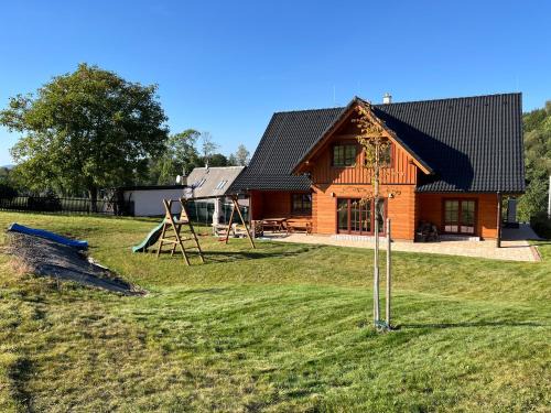 21 miles from Museum of Paper Velké Losiny in Červená Voda, Roubenka Orlice - Orlické hory provides accommodations with access to a sauna. There's an outdoor fireplace and guests can use free Wifi and free private parking. Offering a terrace with garden views, this villa also features a flat-screen TV, a well-equipped kitchen with a dishwasher, an oven, and a microwave, as well as 3 bathrooms. The property has an outdoor dining area. For guests with children, the villa offers an indoor play area and outdoor play equipment. Guests at Roubenka Orlice - Orlické hory can enjoy skiing and cycling nearby, or make the most of the garden. Pardubice Airport is 59 miles from the property.