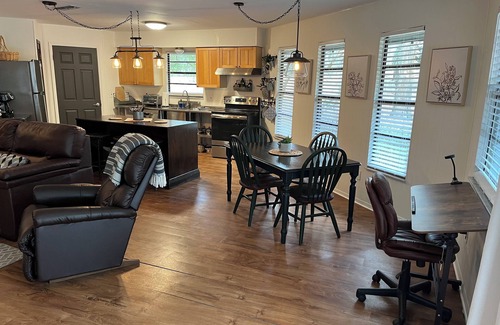 The Round House is really octagon and used to be on stilts overlooking the horse farm next store for the manager to live. The Horse Farm has been separated over the years and the house is now in a wooded areas that has a glimpse of “Little Lake Weir”. Access to Little Lake Weir via small boat ramp on a small canal to the lake. Great for a small boats, Jetski, Canoe, kayak and paddle boards . The deck is an awesome place to relax and our adult kids love to fly drones thru the oak tree when they stay here. It’s only 11 miles to The Villages. There are a lot of farm animals in the area including chicken, ducks, turkeys, goats, pigs, and horses. The Round House is on acreage that joins to the owner’s residence and work hanger. There is plenty of space to park trailers, campers, boats… As long as the house is not being rented on or close to the same day of arrival or departure, we can usually allow earlier check-ins or later check-outs. Fees may apply before 2pm check-ins or after 12 noon check-out. Just let us know if needed. Thank you.