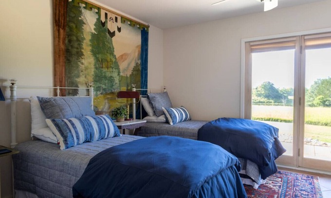 scape to this professionally designed 3BR/2BA home on 50 private acres, just minutes from the Round Top show grounds. Ideal for show visitors, designers, or families, the home features a king master with en suite, a queen room, and a twin room with a shared Jack-and-Jill bath. Enjoy stylish interiors, peaceful surroundings, and easy access to all Round Top has to offer—your perfect Hill Country retreat awaits!