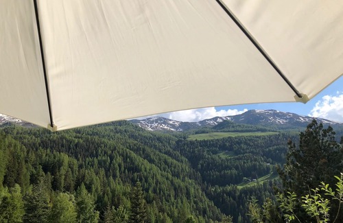 The view from the garden is beautiful: a view of Mont Blanc from the tops of the pine bellissmo.