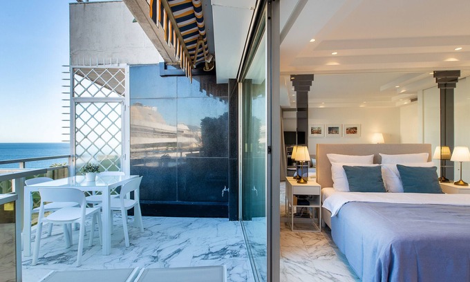 This apartment is situated in a secured luxury residence at the beginning of the Promenade des Anglais, in the "Carré d’Or" of the center of Nice. This residence is the only residence on the Promenade des Anglais that has a rooftop pool with a huge solarium that faces the beach and that which you can enjoy.