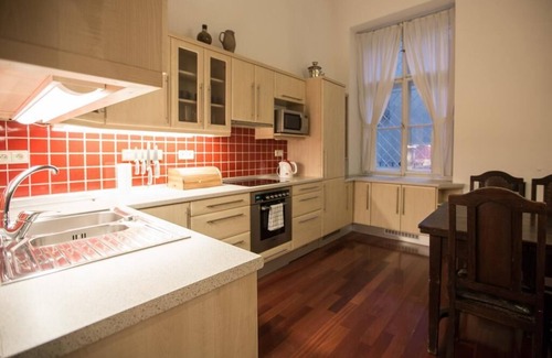 Royal residence directly in the heart of Prague with 1 balcony, 1 terrace in a quiet house with direct access to Charles Bridge and Prague Castle Lesser Town right from your windows. All sightseeings are in walking distance. Public transportation and markets just at your doorstep. The apartment is newly refurbished and is very homy and sunny. 3 private separated sleeping rooms, 1 bathroom with separated toilet and large kitchen. Wi-fi, backyard garden & lot of furniture. OUR AIRPORT TAXI: 30 €.