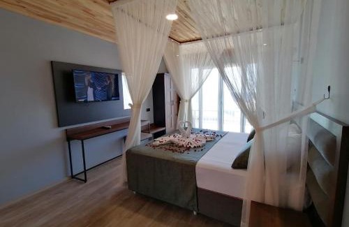 Providing garden views, Royal Villa in Trabzon provides accommodations, a garden, barbecue facilities, and a shared lounge. This beachfront property offers access to a terrace, darts, free private parking, and free Wifi. Guests can make use of the outdoor fireplace or the children's playground, or enjoy views of the sea and mountain. At the villa complex, all units are equipped with air conditioning, a seating area, a flat-screen TV with streaming services, a kitchen, a dining area, a safety deposit box, and a private bathroom with a shower, slippers, and a hair dryer. A fridge, a stovetop, and minibar are also featured, as well as a kettle. At the villa complex, all units come with bed linen and towels. Buffet and continental breakfast options with warm dishes, local specialities, and fresh pastries are available. There is a coffee shop, and packed lunches are also available. For guests with children, the villa offers a baby safety gate. A bicycle rental service and a private beach area are provided at Royal Villa, and guests can go cycling in the surrounding area. Atatürk Pavilion is 15 miles from the accommodation, while Trabzon Hagia Sophia Museum is 14 miles from the property. Trabzon Airport is 7.5 miles away, and the property offers a paid airport shuttle service.