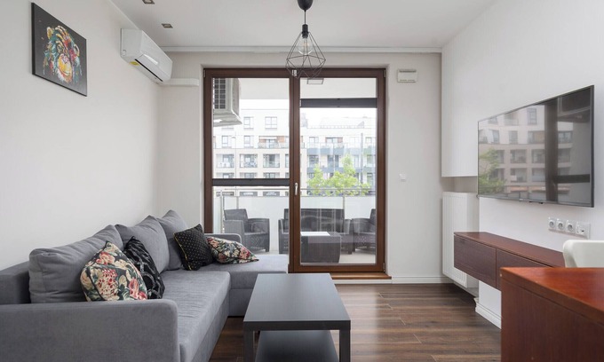 Royal Wilanów Deluxe Apartment is a cozy and stylishly furnished apartment featuring a living room with a sofa bed and a kitchenette, a bedroom with a comfortable double bed, a bathroom, and a spacious balcony where guests can relax and enjoy a morning coffee or an evening glass of wine. Guests have access to a range of amenities offered by the apartment, such as free WiFi, cable TV, a washing machine, an iron, a hairdryer, a fan, a dishwasher, an oven with a microwave function, a kettle, a fridge with a freezer, and kitchen accessories. Additionally, the apartment is equipped with air conditioning, providing exceptional comfort, especially during hot days. Guests also have access to a parking space in the underground garage.