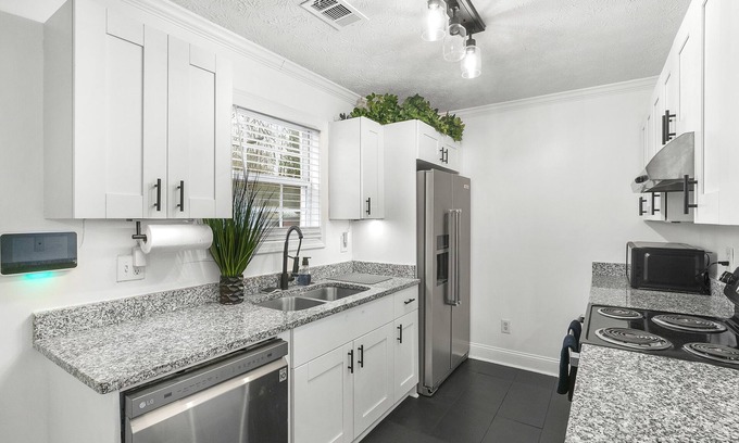 While you're here, you can enjoy all the comforts of home and more, including free WiFi and a Smart TV, as well as a smart speaker and an espresso maker. Other amenities include laundry facilities, towels, a ceiling fan, and a dining area.
