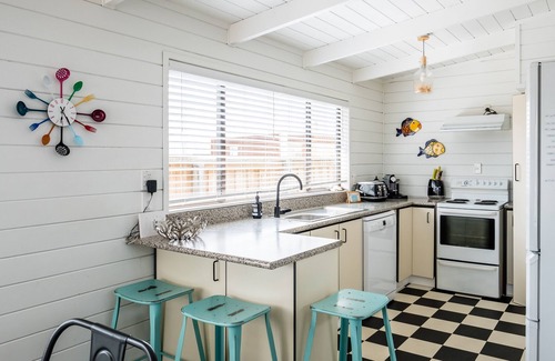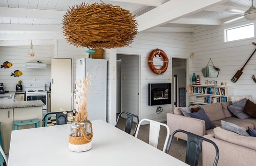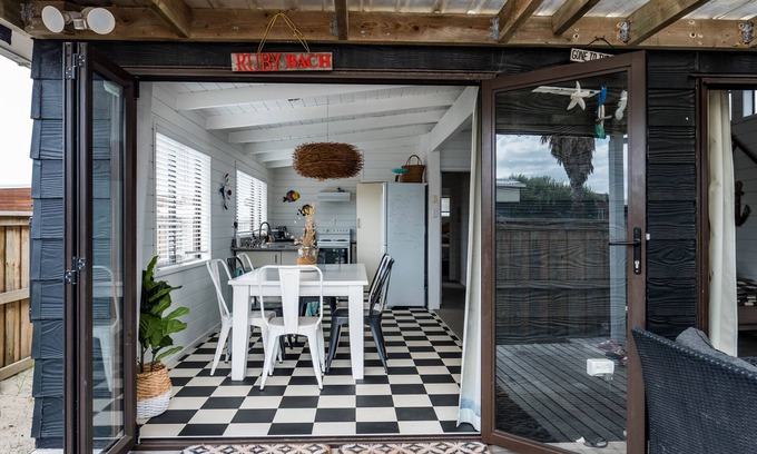 Nestled along the golden shores of Omaha Beach in Auckland, New Zealand, the Ruby Bach offers a vacation experience that's steeped in classic Kiwi charm. This three-bedroom, two-bathroom retreat invites you to create memories that will last a lifetime. Its timeless design and tranquil setting make it an idyllic haven for families and friends seeking a touch of nostalgia and the magic of the beach.