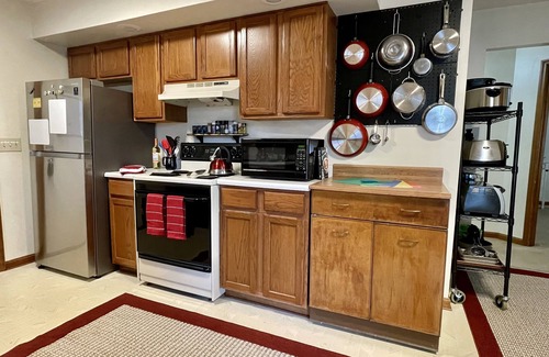 Adorable all-inclusive hotel alternative. Insurance-approved ALE for displaced families. Employer-approved for executives, contractors, and medical workers. Nice spacious single-level home with washer & dryer, BBQ grill & patio. Off-street parking. Contactless self-check-in. Utilities & WiFi included. Enjoy the generously equipped kitchen with starter sets of paper goods, cleaning supplies, spices, coffee, tea, and more. Rates based on occupancy. Pets are welcome with a $5 per night per pet fee!