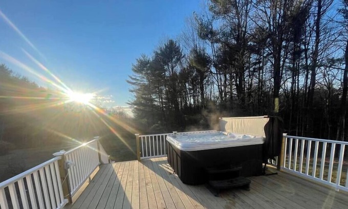 Escape to our serene 8-acre retreat. Bask in the tranquility of starlit nights, surrounded by nature's beauty. Only 8 minutes from Sycamore Country Club, scenic trails, and must-visit spots like Indian Ladder Farm and Thatcher Park (just 18 minutes away). Relax in the outdoor hot tub, cozy up by the fireplace, or enjoy a book in our garden's shade. Inside, find comfort in 3 inviting bedrooms one with private porch. Discover the perfect blend of adventure and relaxation at our idyllic getaway!