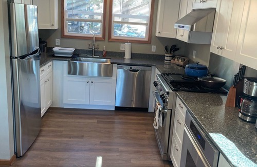 The "Hall" has real hickory floors, a bar, fireplace, giant sectional w/ 65" TV, game table and jukebox. Professional kitchen w/ 36" dual fuel range, second oven and seating for 10. Wrap around deck.