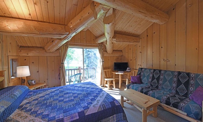 Running Wolf Studio has a log framed ceiling and vaulted windows which provides lots of light all year round. The balcony overlooks the Wolfridge property where you can sit and watch the stars or sip your morning coffee (which is on us!). The room contains a queen bed a futon couch that can fold out to a full size bed. The bathroom has a sink and shower. The kitchenette has a sink, mini-fridge, microwave and a coffee pot. You have a private entrance at the top of the stairs.
