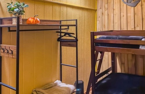 The cabin itself is a 20-foot-by-60-foot building, full of the comforts of home. Enjoy a well-equipped kitchenette, a small sitting and dining area, and a smart TV to stream your favorite movies. Complimentary WiFi and shared on-site laundry facilities are provided as well.