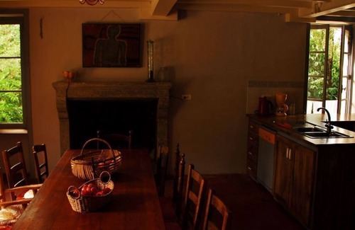 La Tavellerie is a large 19th century stone farmhouse set in the rolling hills of the Vendee Bocage in Western France. It has 5 large bedrooms and 4 bathrooms and comfortably sleeps 13. The house sits in 3 hectares of land which includes an orchard, gardens, a small wood and meadows. It is beautiful and peaceful year-round, and is a lovely place to spend time with friends and family. In the colder months enjoy blazing log fires in the living room and crisp country walks. In summer, laze by the 12m pool, eat outdoors under the large trees in the heat of the day, and on the beautiful south facing stone terrace in the evening. The night sky is wonderful here, and we have a good amateur telescope which you are welcome to use. At all times of the year kids love to make camps in the small wood. We are also a convenient base for visiting Puy du Fou and the Vendee beaches. This is the perfect place to get away from it all and enjoy the beauty of the natural world.