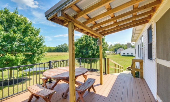 Live out your farmhouse dreams when you stay at this family-friendly vacation rental in Middlefield, OH. Located on a spacious working farm, this 7-bedroom, 2.5-bathroom home boasts 4,000 square feet of interior living space and plenty to do outdoors, making it an ideal place for your next group getaway. Explore the sights of Amish Country just a short drive away, visit Mosquito Creek Lake, or make a day trip to Cleveland. At the end of the day, enjoy the tranquil surroundings as the sun sets.