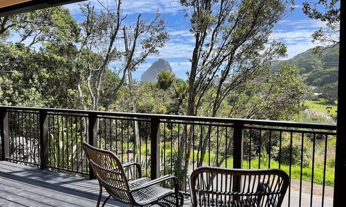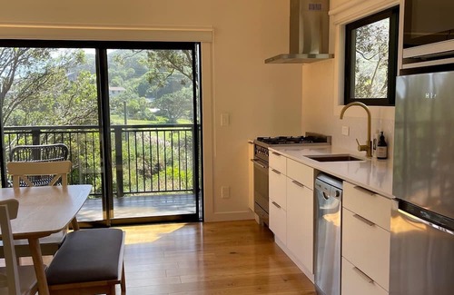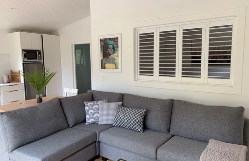 This near new, high end, 1 bedroom, apartment like property is situated in a prime Piha location walking distance to everything. This property combines hotel like luxury with a relaxed beach feel and all the mod cons you could ask for. Fully self contained, it boasts a full sized kitchen, and beautiful bathroom with walk in shower. Open up the huge sliding doors and look out to Lion Rock and across the river to the Waitakere Ranges national park across the road. There is spacious sun drenched terrace, a private outdoor courtyard and outdoor shower for after the beach. If you’d like to stay in, there is Wifi, a 50” TV, Netflix, chrome cast, aircon / heat pump and a super comfy sofa to sink into and relax. Fully appointed with linen, towels, beach towels, and guest amenities, so all you need to do is show up and chill out. All brand new, double glazed and fully insulated with a high-end finish – this is your home away from home! The name "Ruruwai" is a combination of Ruru (New Zealands native owl also known as the Morepork because of it's call) and "wai" meaning water. There are many native birds in Piha and you will see a lot of them, and hopefully hear the Ruru at night. You are a 2 min walk to the Piha Store, Café, Art Gallery, Bowling Club (for a beer and food) and a 5 min walk to the stunning Piha Beach and Lion Rock. Walking track to the Kitekite falls waterfall and Waitakere Ranges National Park at the end of the road and located right on the world famous Hillary Trail. You really can leave your car at the house and walk everywhere. Free carparking directly across the road. Garage below is reserved for the owners, but if you have bulkier items you need secure storage for let us know. The garage will open from time to time but this will be minimal and during reasonable hours only. Portacot and highchair also available on request. Guest access There are two houses on the property and the owners live in the house behind. The driveway and the first part of the stairs are shared. But your place is totally seperate, private and fully self contained. Where you'll sleep Bedroom. Mosquito screens over windows. Wardrobe. USB plugs either side of bed. Double glazed windows. Bedroom 1 queen bed What this place offers Kitchen Wi-Fi Free parking TV Washing machine Air conditioning Private patio or balcony Cot