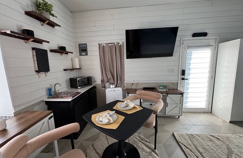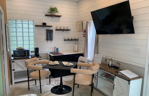 As you step inside, you'll find a warm and inviting interior with comfortable furnishings and tasteful décor. This cozy studio cottage is perfect for relaxing with a good book or enjoying a movie night after a day of exploration. Step outside to your private patio, an ideal spot for sipping morning coffee or unwinding under the stars. Surrounded by vibrant greenery, it’s the perfect oasis to recharge.