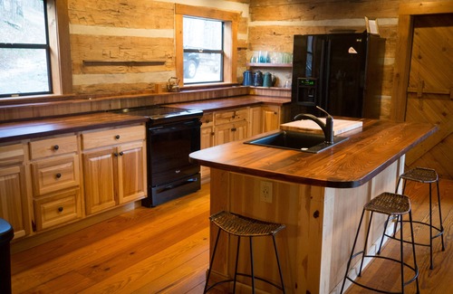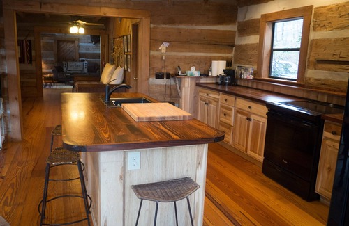This is a historic log cabin that blends modern amenities with authentic rustic charm. The cabin sits on a rushing section of the Chestatee River in the heart of Georgia Mountain Wine Country. The historic Dahlonega square is just 20 minute drive.