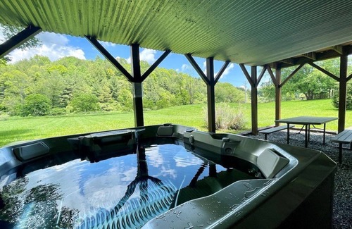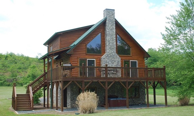 Rushing Waters - An riverfront cabin paradise! Privately located on 2 riverfront acres by the New River with creek frontage, mountain & long river views. Fish, tube or swim the New River located at the edge of the yard. Take a bike ride along the riverfront roadway, picnic by the river, enjoy the firepit or a relaxing soak in the hot tub. Something for everyone! Designed for the larger family to enjoy! Each room of this cabin offers excellent river and mountain views.