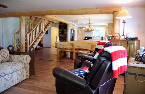 This spacious home accommodates 15 people. Located on the North shore of Drummond Island, the home is within walking distance of the public library, Township Hall (Baked Goods Bingo!), the DI museum, the Bear Track Inn Restaurant, and a short drive to the grocery store, hardware, and other shops.