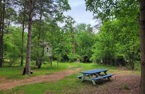 Rustic second story Cabin on 2+ acres lot. Backs up to MD State Forest and walking distance to hundreds of acres of hiking trails, biking, or ATV at your own risk. Close to Elk Neck State Parks, North East River and Elk River. Primitive cabin with outhouse and outdoor shower. Shared pool when in Season. Pastured chickens close with daily fresh eggs available. Grill and outdoor seating with firepit and free firewood. This is a second story cabin with Futon and table. No electricity. Soaps, Linens and towels provided. More pictures to come.