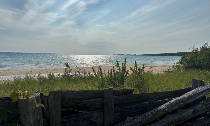 Menonaqua Beach is waiting for you! This rustic, 1950s, five-bedroom cottage offers the best of both worlds with a private beach on Little Traverse Bay and a backyard of tranquil woods within the Menonaqua Conservancy forest and a pristine, spring-fed trout stream. With a mix of queen, full, twin, and bunk beds, a simple galley kitchen and open great room, this cozy retreat is perfect for large families or groups of friends. You'll find a a spacious patio with bay views, a custom built wood-burning fireplace, outdoor fire pit, space heaters, washer/dryer, and WiFi to make your stay comfortable and convenient. Two fully remodeled bathrooms with showers and a bonus half bath ensure everyone has space to freshen up. Walk the beach or boardwalk for just a quarter mile to make use of the amenities-packed Menonaqua Beach Club Association beach and pavilion and enjoy access to the historic Menonaqua Inn for books, games and events. Enjoy your time at Beachbound!