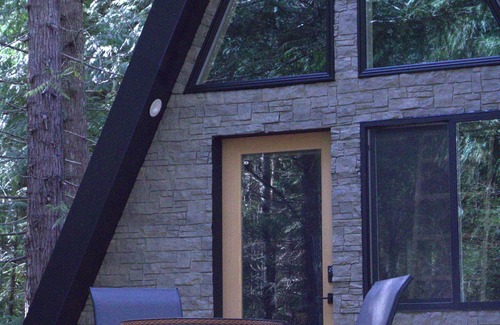 Escape to the forest in our charming A-Frame Tiny Home, nestled at the back of our quiet acreage beside the serene Kinkade Creek. Surrounded by towering trees and the peaceful sounds of nature, this cozy hideaway offers a magical mix of rustic charm and modern comfort.