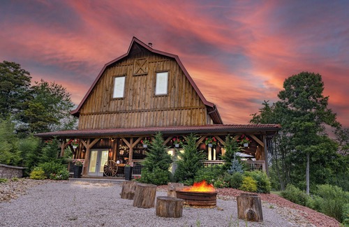 The Barn at Dogwood Ridge Farms is an enchanting, 3,700 square-foot, three-story barn that offers all the rustic charm of a countryside retreat with plenty of amenities to keep everyone entertained. These activities include, hiking, pool table, shuffleboard, foosball, corn hole, retro video gaming systems and a variety of board games. You can also step out onto the 1200 square-foot deck and enjoy the picturesque view of our 180 acre private retreat, or enjoy the Hot-Tub, fire tables and outdoor seating. The barn can comfortably accommodate up to 10 guests. Get ready to relax and rejuvenate in this idyllic countryside setting.