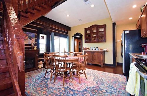 Master bedroom is on the main floor and has 1 Queen size bed ready for you with comfy sheets and pillows. We provide a Pack-and-play if you are traveling with your little one. The main floor has another bedroom (2 twin beds) with a bathroom connected. On the second floor you will find the third bedroom that has a king size bed and twin size bed. The upstairs loft has 1 twin bed with view of the hills. The loft is equipped with books, games, a flat screen TV, sofa and extra blankets. The cabin has 2 bathrooms with towels, soap and shampoo provided. Cozy living room with a sofa, Flat screen TV with local channels. Fully stocked kitchen, large wrap around patio with grill and sitting area. In the yard, you will find a large fire pit area and beautiful views of the Hill Country. Our vacation rental is protected by e-locks. In other words, NO KEYS NO HASSLE! Prior to your stay we simply email you a unique code that works for your reservation only. Late check in is not a problem! Concrete floors and hard wood floors throughout the whole place, no carpet.
