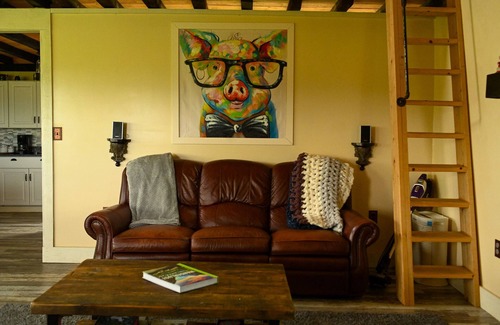 When you enter our farmhouse, you'll be greeted by a large open concept space with 20-foot ceilings, lots of natural light and a classic Vermont aesthetic with antiques and farmhouse Knickknacks. A big kitchen with plenty of room for cooking, a restful space to relax and watch tv and a workspace with a cozy little reading nook up in the loft are the highlights of our home. Outside you can enjoy the sunrise over the mountains from our covered porch or watch the birds and bees in the native wildflower prairie that makes up most of our front property. Behind our home a quaint stream runs through the property, beyond that is another 5 acres of hemlock groves and creeks, with trails perfect for a relaxing stroll right out your front door, with better views of the distance mountains. we hope to see you soon :)