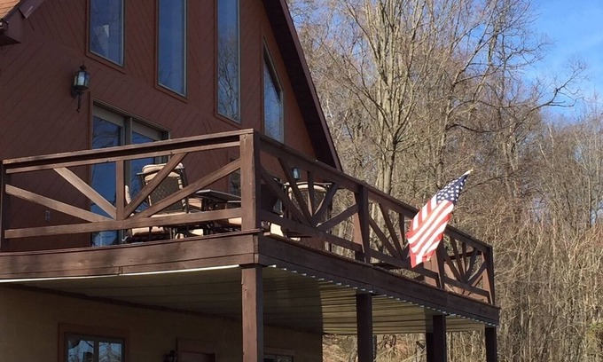 Cozy A-Frame Cabin with plenty of room to roam. Bring your boat, hike or bike, plenty of outdoor activities for the entire family. Enjoy the sights and sounds of the outdoors and relax around the fire pit or gather on our spacious deck. 1st fl has Large Family Rm w/ SMART TV, Full Bath and Laundry Room, 2nd fl has Full kitchen w/ dishwasher, dining table and open space to the Living room and access to the large deck, 2 bedrooms (1-set of bunk beds 2- Queen size bed) full bath with Jacuzzi, 3rd fl Master (Queen) w/ Full Bath provides warm morning views out the A-Frame windows.