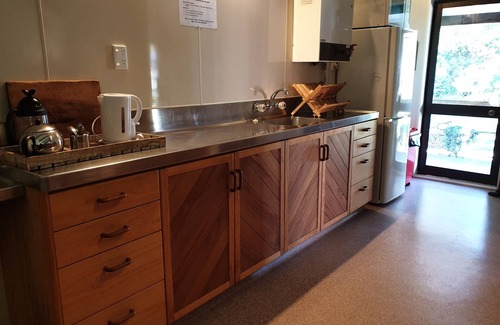 Cabins are nestled among five acres of regenerating native garden creating a peaceful retreat. The accommodation consists a two bedroom cabin block and separate lounge/kitchen block which is great for large groups.