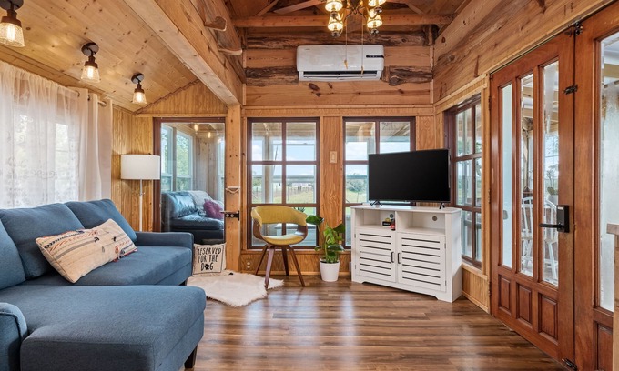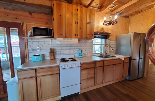 You will enjoy a serene 2.5-acre property all to yourself. You can sleep in the rustic (adorably quirky) one bedroom cabin that sleeps four. In the bedroom we have included a comfortable queen size bed and a corner workspace for all those who cannot quite leave the office! There is a fully equipped kitchen - but bring on the suds there is no dishwasher. The bathroom has a shower and a full-sized washer and dryer. The living room has a smart TV, Wi-Fi and a pull-out couch that sleeps two (the couch is smallish).