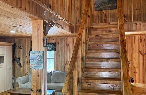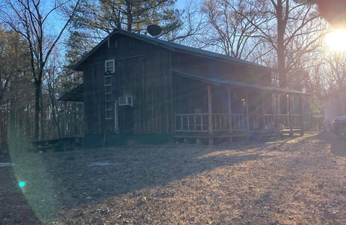 This is a rustic cabin set on 60 acres. Upstairs is open floor plan featuring beds for 7 plus plenty room for more cots or blow up mattresses.. Full kitchen , bathroom , fire pit. 20 minutes from Lake Degray. This property is used primarily for a deer lodge so it is out of the way yet still only 20 minutes to a Walmart, restaurants, etc. and perfect for viewing the Solar Eclipse! We love walking the wooded land and seeing wild life .if you like outdoors, this is the place for you.