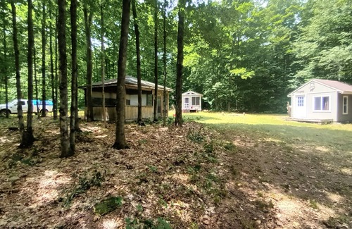 This cabin is located on 10 acres with 1 other cabin and a shared screened in Pavillion located nearby. 4wd is required to access. There is an outhouse just down the trail behind the cabins and the shared screened in pavilion. There is a charcoal grill (bring your own charcoal). There is a bonfire pit between the two cabins as well.