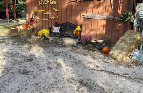 We are located deep in the woods on a river canal. Our Rustic Cabin is made of beautiful pine. Cozy with everything furnished except clothes and food. Come enjoy the wildlife, fishing and kayaking. We are 30 minutes to the beautiful beaches and Pier Park North in Panama City Beach, Florida with all the entertainment. We are out of hustle bustle of traffic. West end off hwy 79. Enjoy both!!!