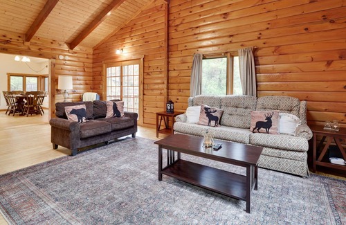 Welcome to our charming cabin tucked in the tranquil woods! Surrounded by towering trees, you'll feel a world away from the hustle and bustle of everyday life. Step inside and be greeted by the warm and inviting ambiance. Enjoy our vast deck with an outdoor dining set and grill. Soak up the sun on our lounge chairs by the pool. Or explore some of the abundance of nearby attractions. Lace up your hiking boots and discover picturesque trails, go on a fishing trip, ride horses, and so much more!