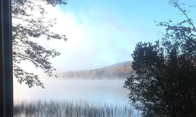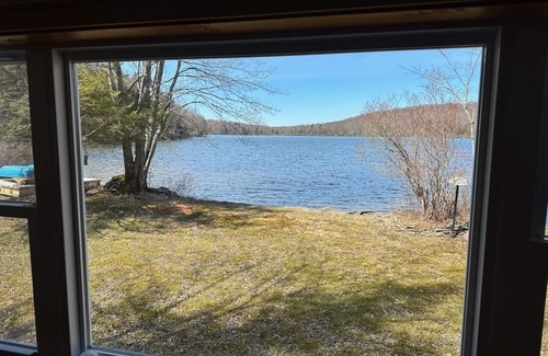 Rustic lakefront cabin on the beautiful 75-acre, natural, 50-foot deep, spring-fed Lake Hiawatha in Starlight, Pa. Excellent fishing and wildlife viewing. Hike on cabin owner's adjacent 1,700 acres with mountain views , pastures, hayfields, stone walls, ponds and woodlands.