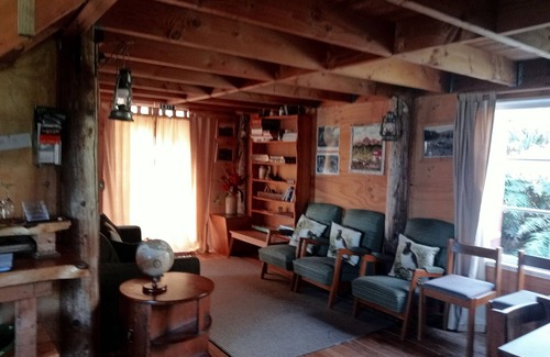 Warm and woody. All that you need for a large group of up to 10 people. It defies belief that this was once a barn for storing hay. It has been lovingly and thoughtfully converted into a unique space like no other in the National Park area. There are two full bathrooms, a full kitchen, outdoor barbeque dining spaces and farm animals grazing nearby with no close neighbours. There are bush and rural views from the lodging and also volcano views from the property.
