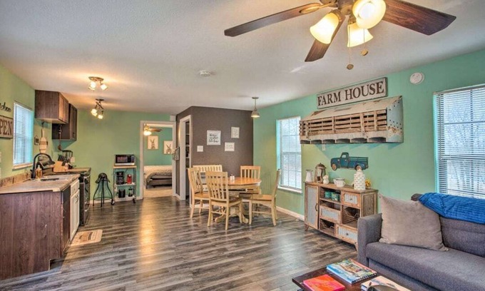 Looking for a comfortable and cozy stay in Denison? Look no further than this charming 1 bedroom and 1 bathroom tiny home, just minutes away from downtown and everything you need for a relaxing and rejuvenating stay. Step inside and you'll find a warm and welcoming living area, complete with a comfortable sofa convertible bed, perfect for unwinding after a long day of travel. The dining table is the ideal spot to enjoy a meal, while the fully equipped kitchen offers all the amenities you need to cook up a feast. When it's time to retire for the night, you'll find a plush king-sized bed in the bedroom, ensuring a comfortable night's sleep. And with all the amenities you could want, this cozy home away from home is the perfect place to settle in and enjoy your stay in Denison. So why wait? Book your stay today and experience the best of both worlds - the country feel and the convenience of being just minutes from the city.