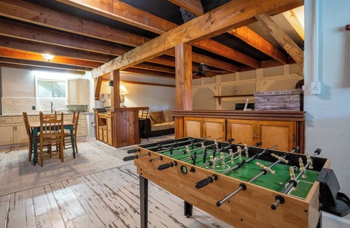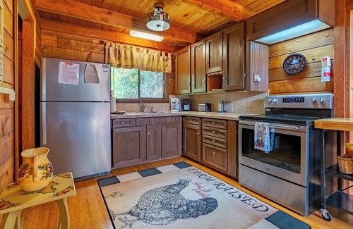 Leave your familiar routine for this vacation rental near Blue Ridge Parkway. This rustic cabin, 7 miles from Piedmont View, has bed sizes for every family’s need, boasts a well-equipped kitchen for household meals, and offers access to a community pool, fishing pond, and tennis/basketball court — so recreation is just around the bend. Whether you want to visit the Andy Griffith Museum or make a day trip to Hanging Rock State Park, this 4-bed + loft, 3-bath home will make the trip worthwhile.