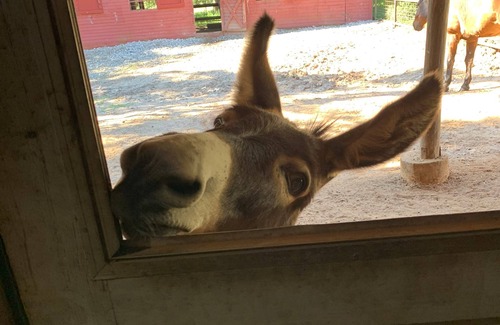 Visit the barn with the owner and meet our horses, 3 goats named Luke and Francis and our newest arrival Baby Panic, and a precocious mini-donkey named Penny.