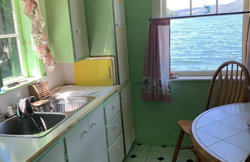 This floating cabin is very rustic it is perfect for a fishing holiday with the family. It is totally off grid we have the appliances set up with propane and as for lights we have some battery operated ones and there is a generator if you so choose to rent it! The ocean views are breathtaking the wild life is everywhere! I love it when the porpoise come through for a visit! This cabin is water access only! We hope you will enjoy it as much as we do! The kitchen will send you back in time we have all the essentials but there are a few surprises like the cold cupboard to keep your drinks in! Not to worry there is a propane fridge! There is a double bed in the bedroom and the living room has a bunk bed with a double bottom and a single top! There is also a couch with a pull out bed!