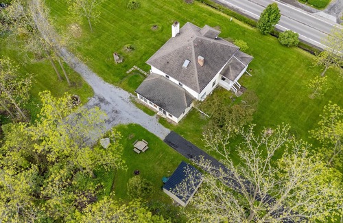 Nestled on a peaceful 10-acre wooded lot, this charming American Foursquare farmhouse blends classic character with modern conveniences, creating the ideal Finger Lakes retreat for families or groups seeking comfort, space, and the serenity of nature. Surrounded by mature trees, winding trails, and abundant wildlife, the property offers a quiet escape while still being just minutes from downtown Canandaigua and CMAC, the region's premier concert venue.