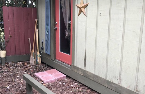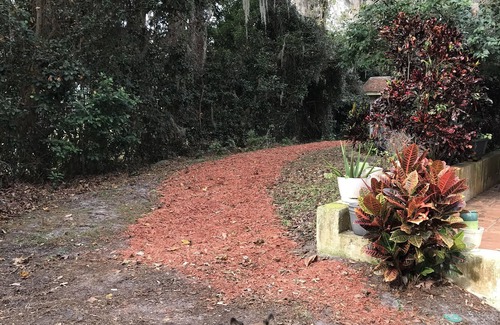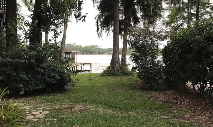 Originally a treehouse nestled into the hundred year old cypress trees, the cozy SMALL cabin is ten steps from the shore of a deep 100 acre sandy bottom pristine spring fed ski lake. The main residence is at the front of the property which I share with my Golden and Sheltie. Other than being a text message away if you need anything, your vacation in the cabin will be very private and peaceful. Fall asleep listening to the hoot owls and wake up staring at the morning sunshine glistening on the water. Get your day started with a cup of coffee at the end of the boat dock before taking the canoe out for a leisurely trip across the lake. Nature photography? Bird watching? Ghost Stories around the firepit in the evening? Fishing? Playing fetch with your dog? Sun Worshiping on the floating dock? Maybe your favorite place will be the hammock! If you are looking for a place close to the theme parks, this isn't it. If you want a relaxing and unique experience away from the tourists and close to nature, the rustic cabin offers a comfortable queen bed, cozy loveseat, side chair, WiFi, Netflix, kitchen with fridge, microwave, dining area, full bathroom with hot shower and cold AC. This is not the Hilton. Please don't book if you are needing granite countertops, plush carpeting, brand new stainless steel appliances or a cabana boy. This is an old rustic cabin in the woods. If you have mobility or allergy issues or have special oxygen needs to breath, please do not book the cabin. Creeky and sloped floorboards. Chipped paint. Jasmine, gardenia, honeysuckle and pollen dust. Mulched and cobblestone path through the trees. Little lizards staring at you from atop the chiminea. I cannot emphasize enough that this cabin is not for everyone. If you enjoyed summer camp as a kid and want to relive those memories, you will enjoy my little piece of heaven.