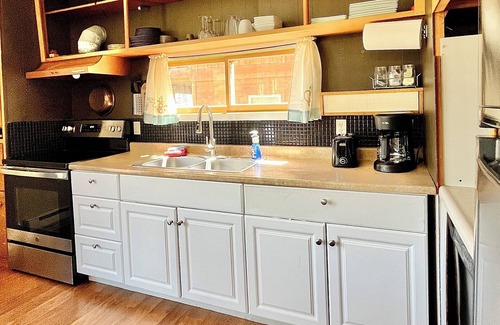 *The kitchen, complete with a dishwasher, suits basic culinary needs