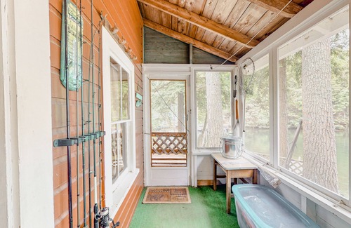 It doesn't get more classically Maine than this turn-of-the-century fishing cabin, scenically situated on the lakefront of Webber Pond in Vassalboro. Here on one of the best lakes for bass in the country, you can spend your vacation fishing, swimming, and falling asleep to the beautiful call of the loons.