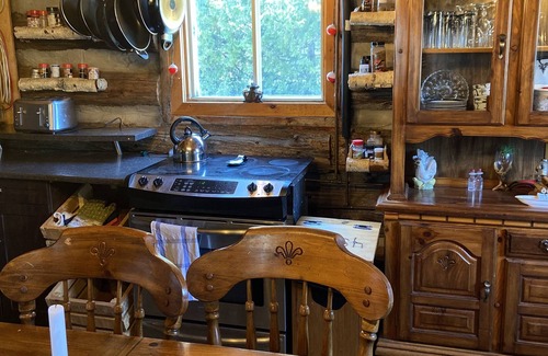 Rustic log cabin at Robertson lake. Short walk to Beach area. Boat launch and park nearby. There is one king size, one double, 4 single beds and a pull out. A kitchen, living room, dining area make up the main living area. In the winter there is ice fishing and skating on the lake if the conditions are right!