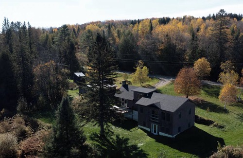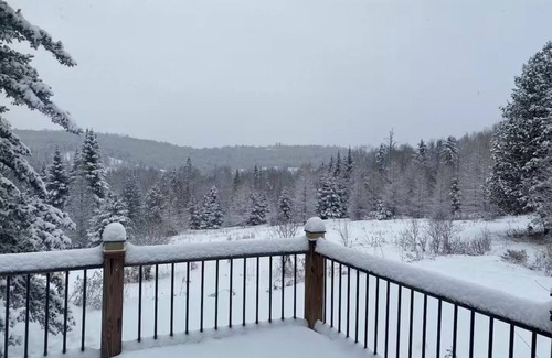Traditional log cabin on 14 wooded acres, cozy, secluded, perfect for families, friends, or couples looking for peace & quiet in the Northeast Kingdom. Our dog-friendly home is on a quiet country back lane surrounded by trees, with mountain views from every room. On a clear night, the star-gazing is magical. Visit Dog Mountain, Lake Willoughby, historic downtown Saint Johnsbury, or just soak in the hot tub. Equipped with Starlink high-speed internet. Sleeps 4. Burke Mountain ski resort 25 mins.